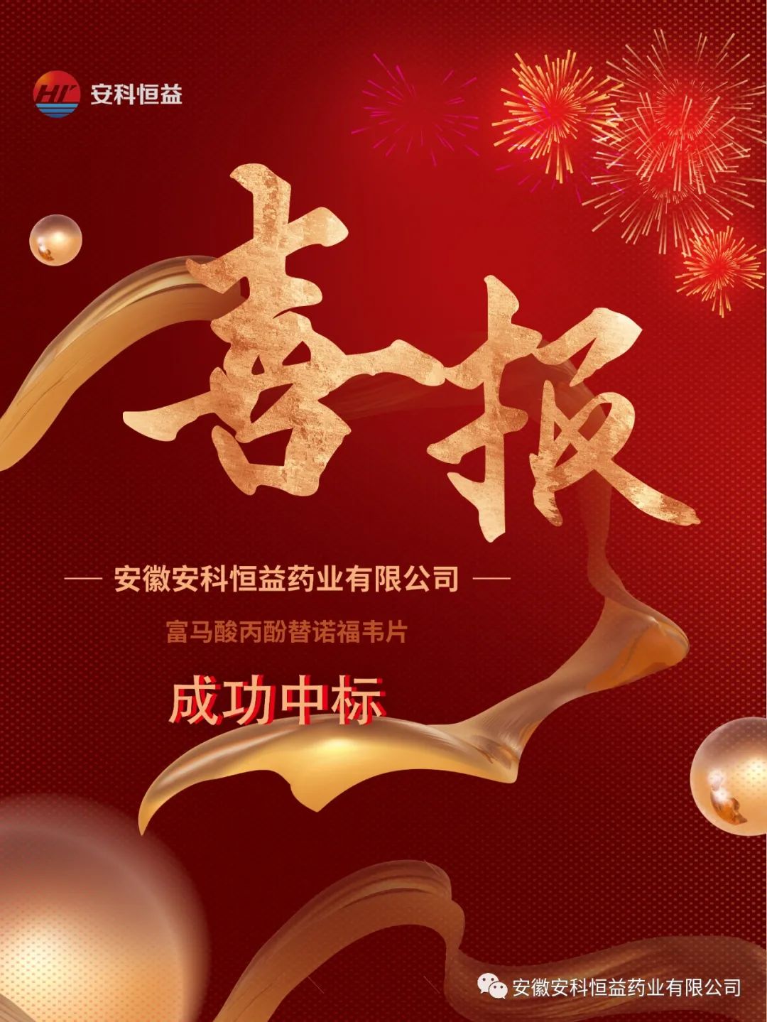 喜報!安科恒益富馬酸丙酚替諾福韋片成功中標(biāo)