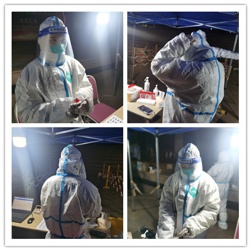 除了集中采集核酸,孫新玉也參與到入戶采集的工作,穿好防護(hù)服,全面做好消毒工作,帶上采集工具,給社區(qū)行動(dòng)不方便的老人去家里錄信息和核酸檢測(cè) ,并告知他們采集后等待結(jié)果的流程……常常采集完幾棟樓,孫新玉早已汗流浹背!