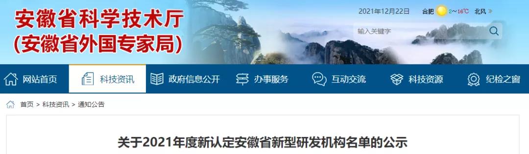 近日,安徽省科學技術廳公布 2021 年度新認定安徽省新型研發機構評審結果,安科生物控股子公司瀚科邁博獲得 2021 年度新認定安徽省新型研發機構殊榮。