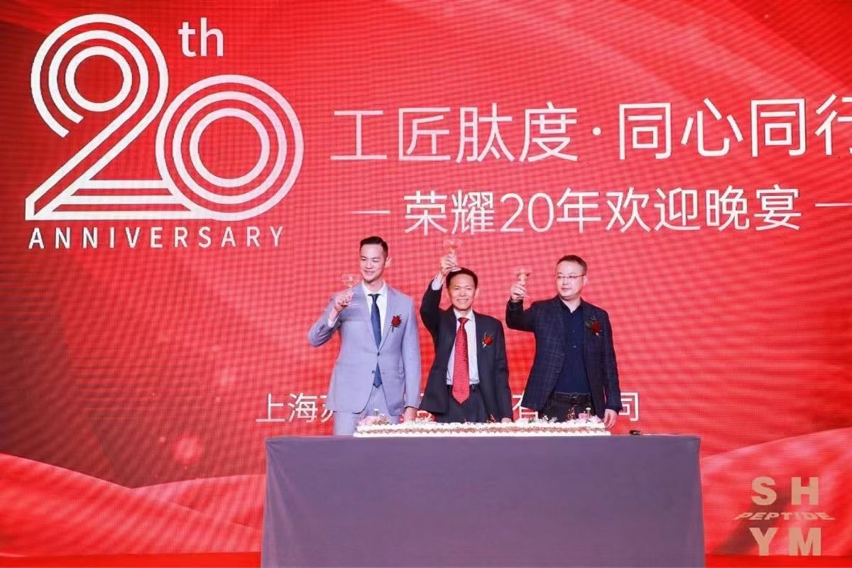 2021 年 11 月 26 日,對(duì)蘇豪逸明人來(lái)說(shuō)是個(gè)值得慶賀的日子。以工匠“肽”度 同心同行為主題的上海蘇豪逸明公司成立 20 周年慶祝大會(huì),在上海虹橋康得思酒店成功舉辦。因上海突發(fā)疫情影響,宋禮華董事長(zhǎng)等集團(tuán)領(lǐng)導(dǎo)未能如愿參加此次活動(dòng),由安科生物集團(tuán)高級(jí)副總裁盛海代表集團(tuán)出席了活動(dòng)。活動(dòng)當(dāng)天,蘇豪逸明創(chuàng)始人、總經(jīng)理周逸明、執(zhí)行董事周大為等領(lǐng)導(dǎo)及蘇豪逸明全體員工共同參會(huì)。