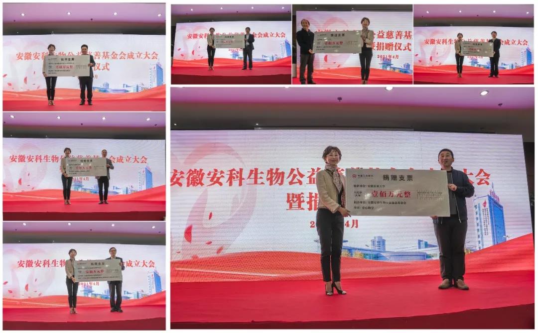 活動(dòng)當(dāng)天,安徽安科生物公益慈善基金會(huì)向安徽大學(xué)、安徽農(nóng)業(yè)大學(xué)、安徽醫(yī)科大學(xué)、安徽中醫(yī)藥大學(xué)、安徽師范大學(xué)、溫州醫(yī)科大學(xué) 6 所高校分別捐贈(zèng)獎(jiǎng)助學(xué)金 100 萬(wàn)元,助力困難學(xué)生更好完成學(xué)業(yè),總額達(dá) 600 萬(wàn);向中華少年兒童慈善救助基金會(huì)“中國(guó)流動(dòng)留守兒童體格發(fā)育研究和能力建設(shè)項(xiàng)目暨‘天使童行’公益項(xiàng)目捐贈(zèng) 100 萬(wàn)元,用于幫助更多生長(zhǎng)發(fā)育關(guān)鍵時(shí)期的孩子們健康成長(zhǎng);向安徽省馬鞍山市當(dāng)涂縣焦家社區(qū)老年人日間照料中心捐贈(zèng) 100 萬(wàn)元,用于關(guān)愛孤寡老人們的生活質(zhì)量和身體健康。