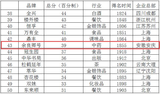 在行業細分中,48 家中華老字號藥企僅有 11 家上榜,安科余良卿公司位列其中。