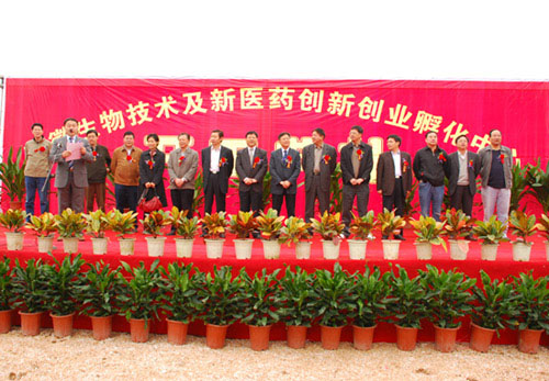 二00七年十月三十日,合肥高新技術產業開發區,紅楓路與香樟大道交叉口一派喜慶氣氛,這里彩旗飄揚,氣球高懸,鞭炮齊鳴,“安徽生物技術及新醫藥創新創業孵化中心”建設開工儀式在這里隆重舉行,省發改委、省經委、省科技廳有關領導,合肥市及高新區相關部門領導出席開工儀式并為建設工程奠基。