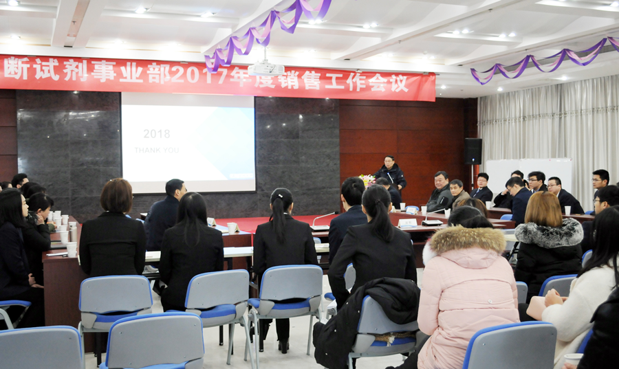 會(huì)議開(kāi)始后,診斷試劑事業(yè)部總經(jīng)理徐振山先生就  2017  年部門在銷售、生產(chǎn)、研發(fā)等方面的工作做了詳細(xì)匯報(bào)。2017 年,是診斷試劑事業(yè)部集體發(fā)力的一年,無(wú)論是研發(fā)創(chuàng)新、市場(chǎng)銷售、生產(chǎn)服務(wù)、團(tuán)隊(duì)管理等各方面成績(jī)都趨于向好。