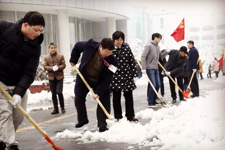 為了讓公司的各個路口恢復通行能力,讓員工有路可走,公司黨總支急員工所急,想員工所想,充分發動黨員、積極分子和共青團員們清理公司主干道上的積雪。一經提議,50 多名黨員的積極響應。大家于中午 12:30 分準時投入到鏟冰除雪的“戰斗”中來。公司許多高管積極支持,身體力行,以身作則,給廣大黨團員們起到模范帶頭作用。他們不畏嚴寒,不怕濕滑,通過近一個小時的連續作戰,400 米長的主干道上的積雪被清理的十分干凈。筆直的瀝青路面在白雪的映襯下顯得更加顯目,公司的道路又恢復了往日的繁忙。