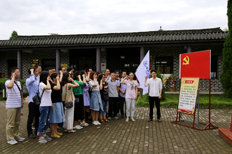 企劃部的楊墨是剛剛入黨的預備黨員,在新四軍四支隊舊址,在高敬亭塑像前,在黨旗下向黨許下了入黨誓言。他說,“新四軍四支隊艱苦奮斗、自力更生的精神深刻地感染了我,作為一名預備黨員,我被中國共產黨的光輝歷史所吸引和激勵,希望自己也能成為像艱苦歲月中的黨員那樣的人,為黨和人民奉獻一切。”