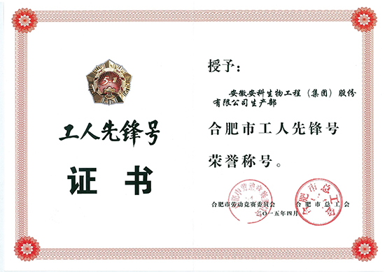 近日,安科生物工程(集團)股份有限公司生產部被合肥市勞動競賽委員會、合肥市總工會授予“合肥市工人先鋒號”榮譽稱號。