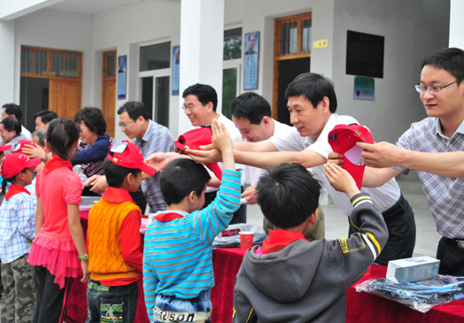 愛心活動(dòng)現(xiàn)場(chǎng),參加捐贈(zèng)儀式的省科技廳領(lǐng)導(dǎo)、當(dāng)?shù)卣块T有關(guān)領(lǐng)導(dǎo)及安科生物的總支書記張來(lái)祥先生為孩子們親手送上嶄新的書包和其他學(xué)習(xí)用品,每位老師也獲得了精致的公文包和紀(jì)念茶杯等禮品。捐贈(zèng)儀式時(shí)金寨縣縣委組織部部長(zhǎng)發(fā)表演講勉勵(lì)孩子們要努力學(xué)習(xí),另外他說(shuō):“所謂‘吃水不忘挖井人’,同學(xué)們你們要學(xué)會(huì)感恩,安科生物公司是本次活動(dòng)的全程贊助方,你們要記住安科生物這個(gè)輝煌的名字。”隨后張來(lái)祥書記代表安科生物公司講話,他說(shuō):“作為一家具有社會(huì)責(zé)任感的企業(yè),安科生物一直以來(lái)特別關(guān)注鄉(xiāng)村教育,尤其是大別山革命老區(qū)的教育事業(yè)。我們的企業(yè)與2009年成功上市,在不斷做大做強(qiáng)的同時(shí)也不忘回報(bào)社會(huì),為社會(huì)公益事業(yè)做貢獻(xiàn),這樣的富有意義的活動(dòng)我們還會(huì)辦下去,并會(huì)辦的更好。”