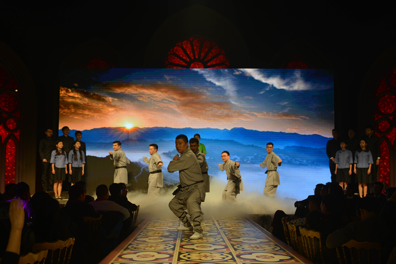 隨后是華中大區帶來的《少林·牧羊曲》,演員雖然都不是專業的武術高手,卻也淋漓盡致地展示了中國功夫的博大精深。靜若處子,動若脫兔,一招一式,剛勁有力,贏得了現場的陣陣掌聲。在這場成功的表演背后,演員們一定付出了辛勤的汗水,堅持不懈地排練,看著恢弘的氣勢,我們心潮澎湃,這就是安科人的豪情與剛毅!