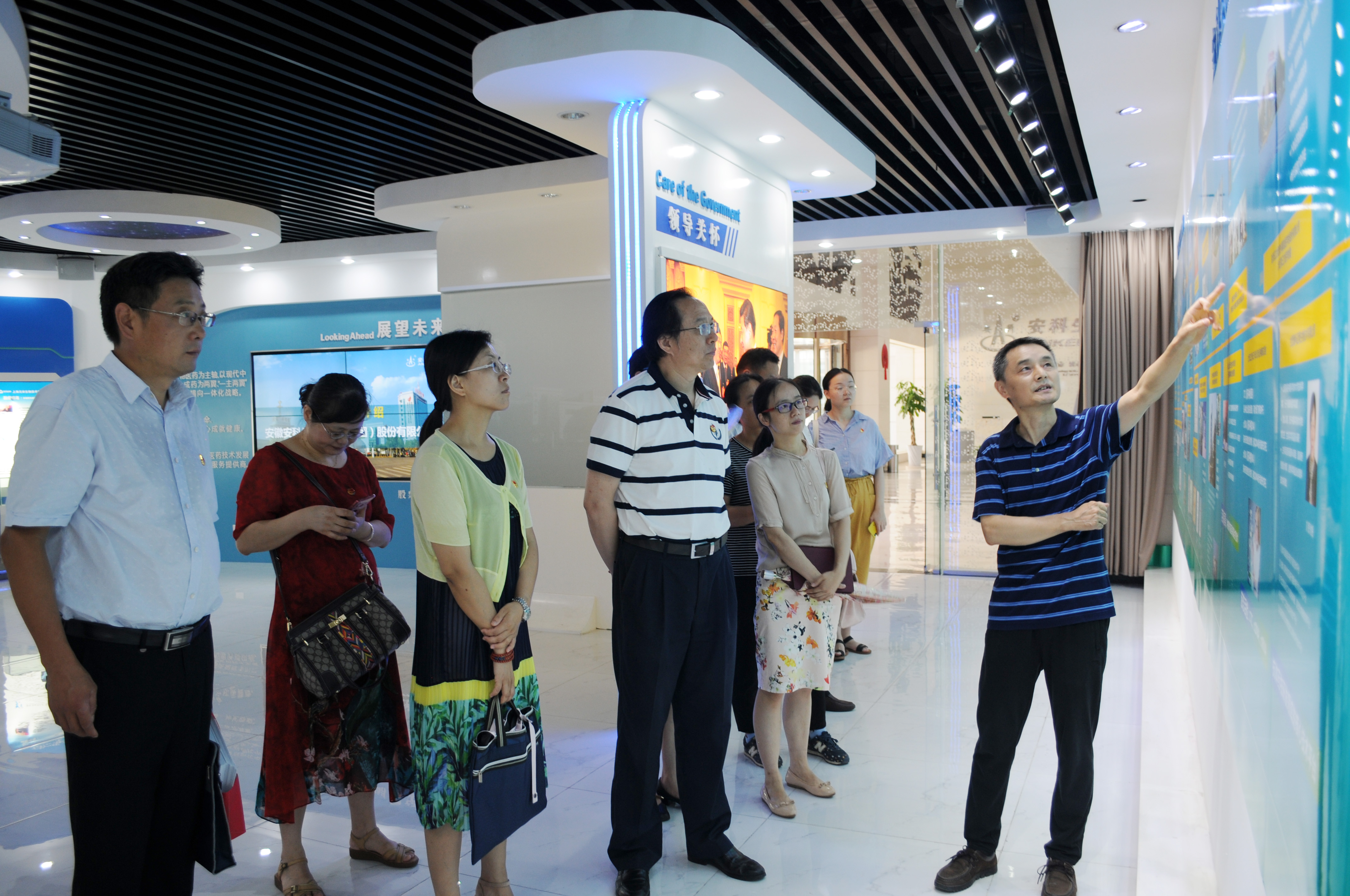 稅務局的黨員同志們首先來到位于公司南區 A 座一樓的公司展廳,安科生物黨總支書記汪灶標向來賓詳細介紹了安科生物的組織結構、科研開發和生產經營等各方面情況。通過介紹,第四支部的黨員們對安科生物始終堅持“黨建引領,文化助力”的發展思路,以及合規發展、誠信經營的發展理念下,多年來所取得的成績,有了全面的了解和具體的認識。