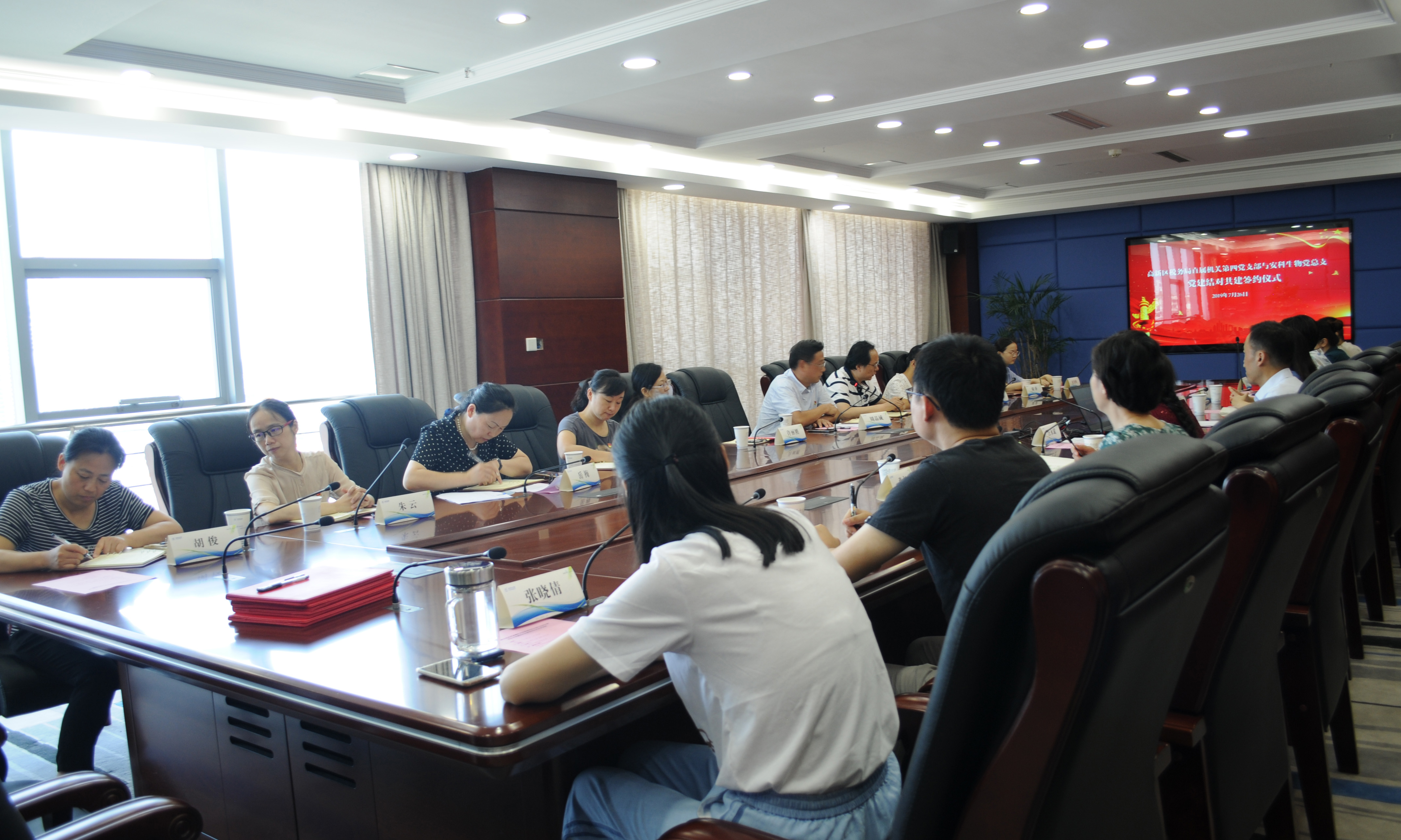 為進一步深入貫徹落實黨的十九大精神,不斷提高基層黨組織的組織力,學習力和戰斗力,把黨支部建設成為宣傳黨的主張,貫徹黨的決定,團結動員職工,推動改革發展的堅強戰斗堡壘,2019 年 7 月 26 日,中共國家稅務總局合肥高新技術產業開發區稅務局直屬機關委員會第四黨支部部分黨員,冒著炎炎酷暑,在區局黨委委員許麗剛、第四支部書記周品誠率領下來到安科生物,與安科生物黨組織開展了“黨建結對共建”活動,并簽署黨建共建協議書。