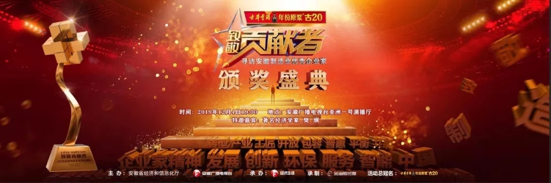“致敬貢獻者----尋訪安徽制造業優秀企業家”大型融媒體活動,是在省委、省政府號召下,由省經信廳聯合安徽廣播電視臺推出的重磅媒體行動,由經濟生活頻道承辦,古井貢酒年份原漿·古20獨家冠名。活動共包括20名優秀制造業企業家人物紀錄片展播、系列高峰論壇、盛大的頒獎典禮三大版塊。