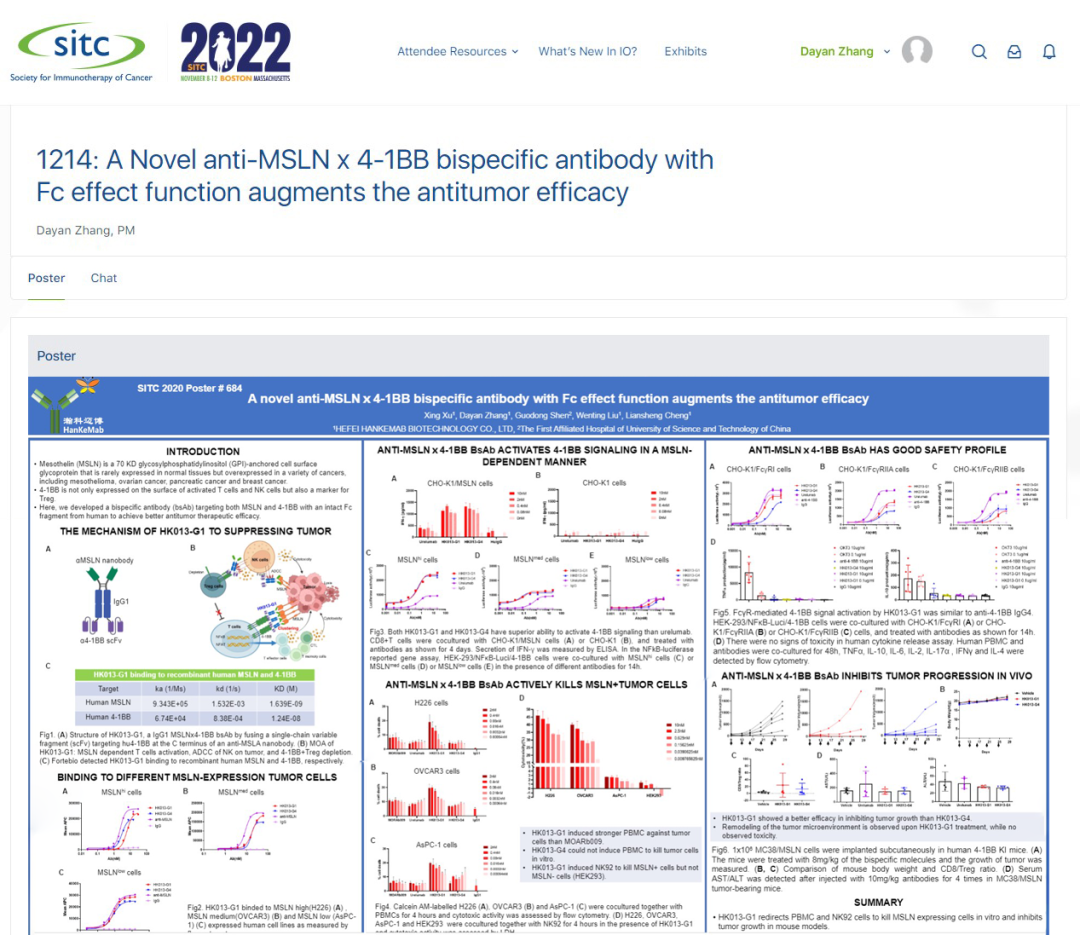 2022年11月8日至12日,第37屆癌癥免疫治療學會(SITC)年會于美國波士頓舉辦。安科生物控股子公司瀚科邁博以壁報形式公布了研發(fā)管線上兩款產品HK003以及HK013的臨床前研究數據。