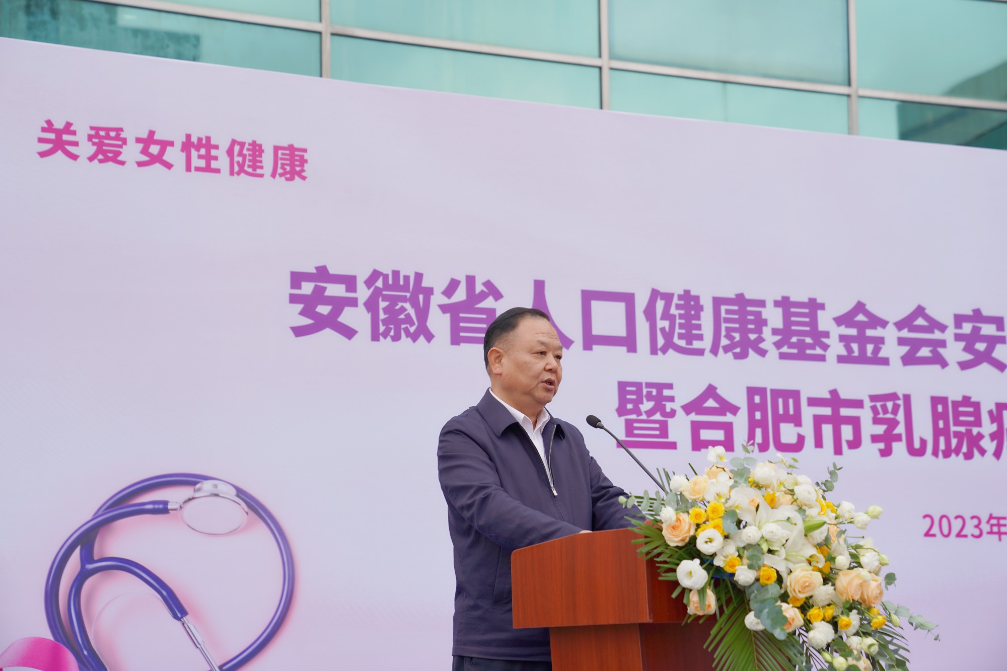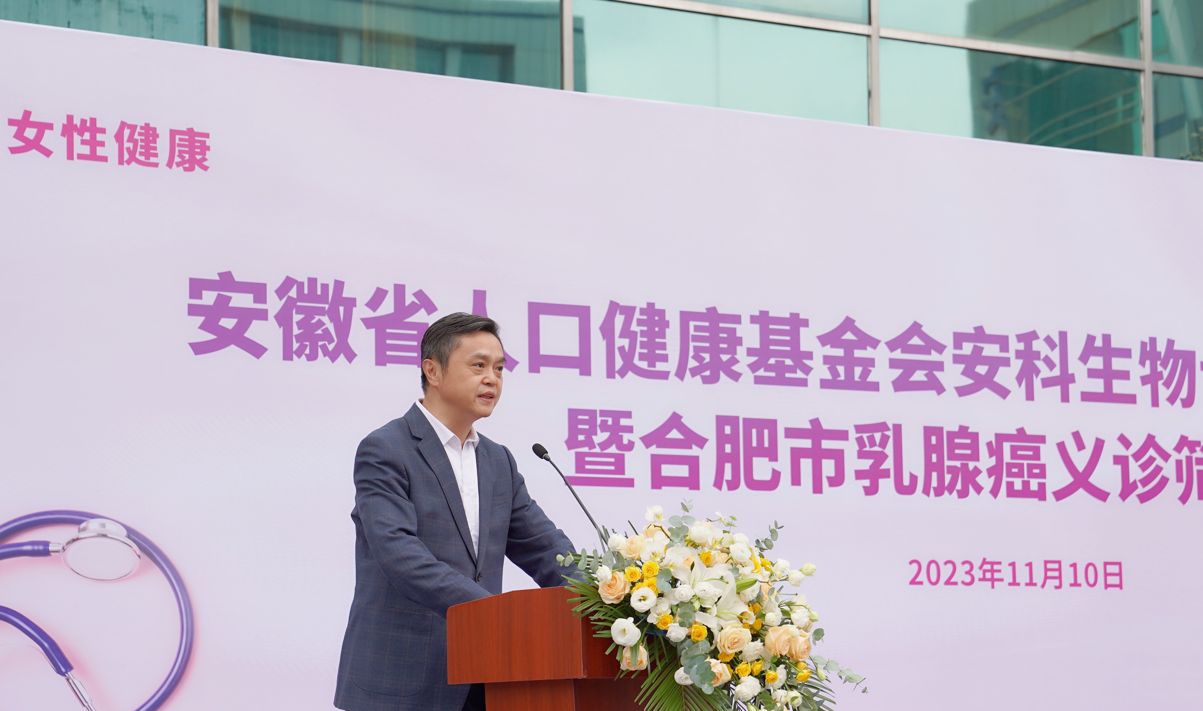 隨后,在捐贈儀式啟動前,合肥市衛生健康委員會黨委書記、主任張曉峰介紹此次合肥市乳腺癌義診篩查活動的組織與開展情況。